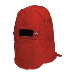 DESCRIPTION: Escafandra o capuz de crupón, generalmente de color rojo o beige y forrada interiormente con un tejido anti-calórico. Protege la cabeza, el rostro y el cuello de proyecciones de soldadura.