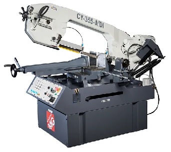 Sierra de cinta manual con bajada hidráulica regulable para cortes de hasta 45º izquierda y 60° derecha